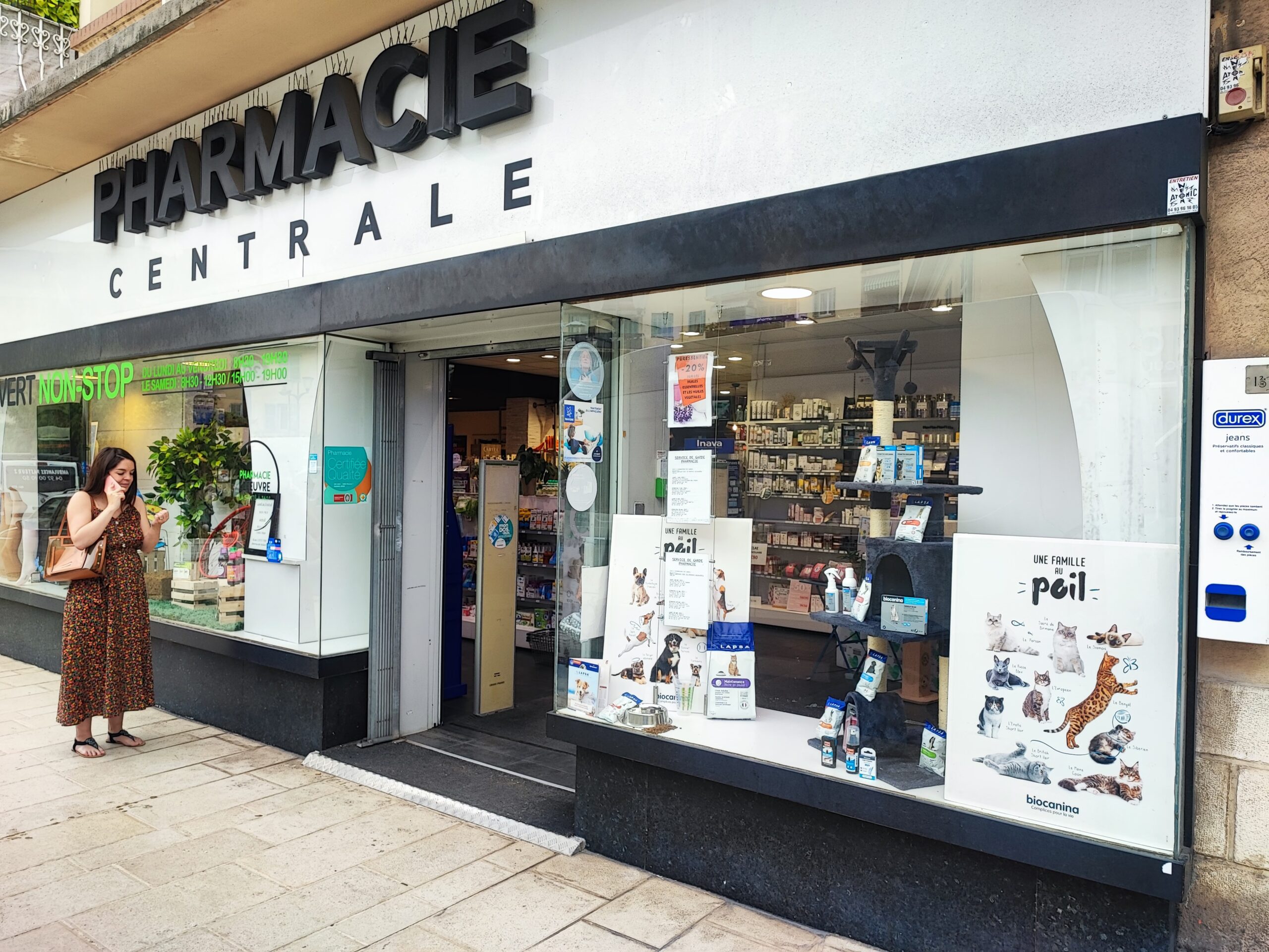 Montage sur pied devant l’officine